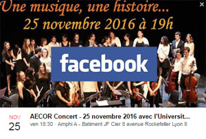 L'Association ?tudiante de la Chorale et Orchestre Rockefeller (AECOR) organise un concert caritatif au profit de trois associations étudiantes de l’Université Claude Bernard Lyon 1 : Actes, Pharma Lyon Humanitaire et Terre d'ortho.