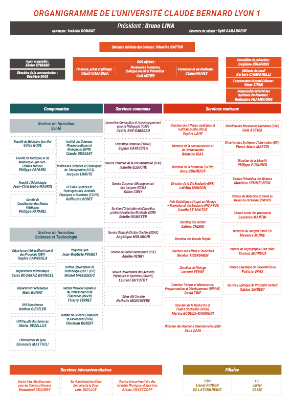 Organigramme de l'Université Claude Bernard Lyon 1 téléchargeable version au 16/06/25
